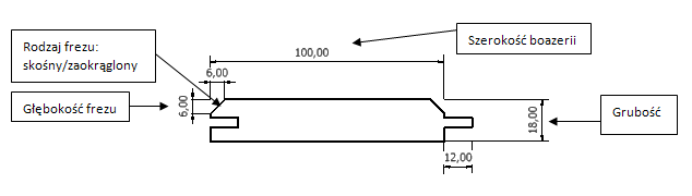 Poniższy rysunek obrazuje podstawowe parametry deski boazeryjnej.