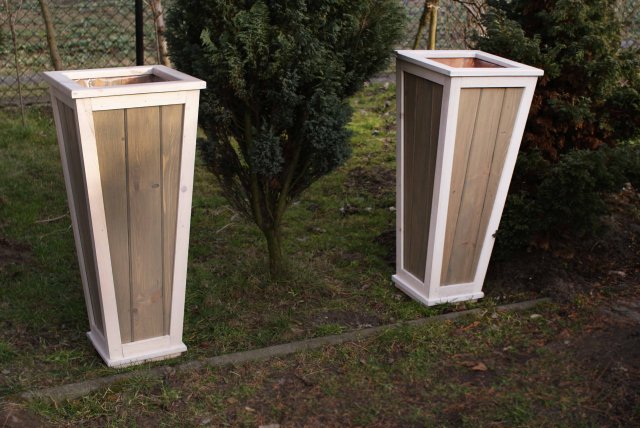Wszystkie elementy donic po dwukrotnym szlifowaniu są impregnowane (impregnacja w kolorze), w celu wzmocnienia i zabezpieczenia materiału przed wilgocią, pleśnią oraz owadami. Ponadto wykonujemy malowanie bezbarwną lazurą, która zapewnia ekstremalną odporność przed niekorzystnymi czynnikami, wpływającymi na drewno eksploatowane w trudnych warunkach atmosferycznych (słońce, deszcz). Ponadto lazura nadaje donicom delikatny połysk oraz Kolor oraz inne szczegóły dotyczące malowania uzgadniane są indywidualnie z Klientem na podstawie dostępnego wzornika kolorów. Na specjalne życzenie klienta impregnację lub malowanie możemy wykonać produktem wybranej marki.