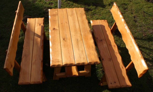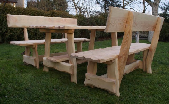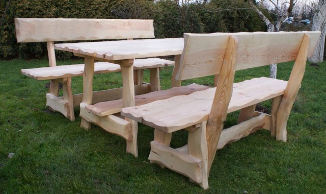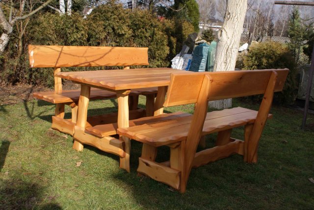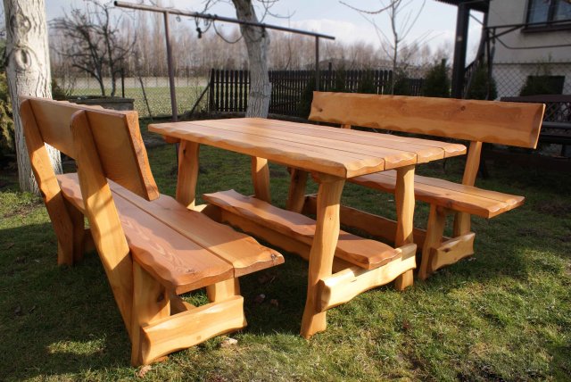 - Meble ogrodowe wykonane z najwyższej jakości litego suszonego drewna sosnowego lub świerkowego. Zastosowanie suszonego materiału zabezpiecza meble przed pękaniem i wykręcaniem się.